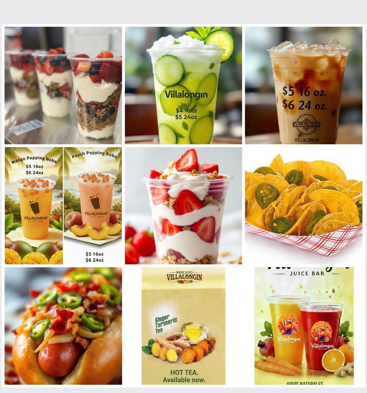 En Villalongin Juice Bar and Snacks, seleccionamos frutas y verduras frescas para crear jugos que elevan tu energía y mejoran tu ánimo. Cada mezcla está diseñada para aportar nutrientes esenciales y apoyar tu bienestar diario.